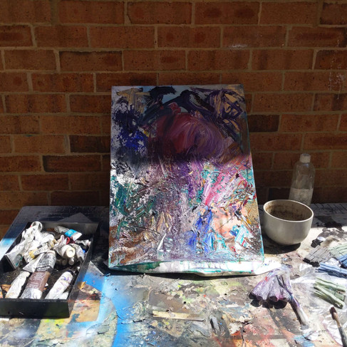 Karel Appel was foremost in my mind. Just throw, squeeze and spread the paint. Don't think!