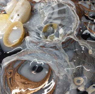 I decided to push some actual shells into the resin. I really don't know why, but my subconscious mind had collected several artists who mould resin and use it with objects in different ways. I wanted to create a focal area perhaps a more 3D piece?