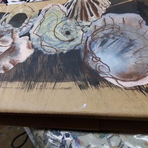 I realised painting on box packaging, I could take the image around corners otherwise it was just a flat surface.