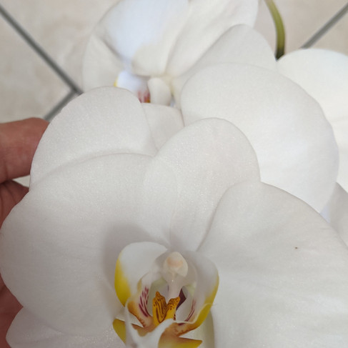 Because as I have said before, I love orchids. They remind me of my travels to the far east. So I have many plants scattered around the house. The plants have natural blooms and artificial stems positioned in the soil for an all-year-round flower.