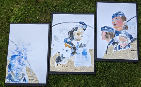 3 x Monotypes with collage open acrylics, pencil, pastel and Artgraf (each piece 14.5 x 21 ins)